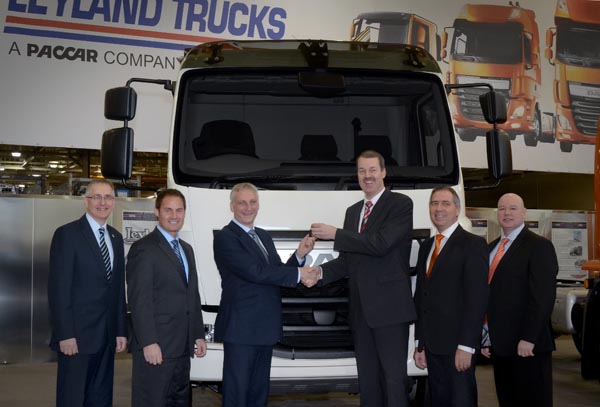 Left to right: Peter Jukes, Operations Director, Leyland Trucks; Ron Augustyn, Managing Director, Leyland Trucks; Chris Miller, Managing Director, Leeds Commercial; Harrie Schippers, President, DAF Trucks NV; Ray Ashworth, Managing Director, DAF Trucks UK; Bob Bosco; Fleet and Key Accounts Sales Manager, Chatfields Leeds.