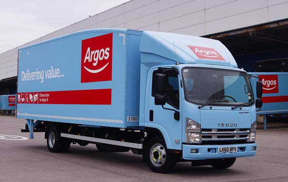 The Argos 4×2 rigid Isuzu on display will have a 24’ Bevan Series 21 demountable box body with an aerodynamic radius roof and barn type rear doors. One notable feature of the demount body is that the body panels are manufactured from a new composite material called Nidafont that is both ultra light and extremely strong and durable. The combination of the Isuzu 7.5 tonne chassis cab with the lightweight aerodynamic body enables Argos to achieve significant fuel savings and greater operational efficiencies on its multi-drop home delivery operation.