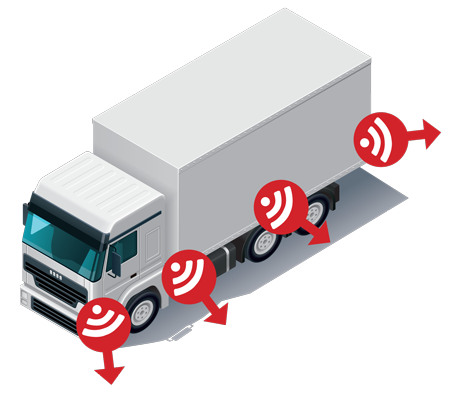Truck_Diagrams-4aThe side detection solution uses ultrasonic sensors that have been specifically developed to provide a warning system to the driver about the proximity of other road users, giving adequate time to adjust their manoeuvre and avoid a collision. Meanwhile, at risk pedestrians and cyclists can also receive an audible alert via an externally fitted loudspeaker to make them aware of a turning vehicle, enabling them to step back or to move away from a dangerous position.