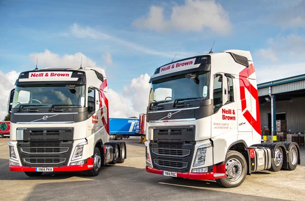 Hessle, East Yorkshire-based Neill & Brown Global Logistics, have recently put two Euro-6 compliant Volvo FH tractor units into service. The company operate a fleet of forty trucks and have run Volvo for over thirty years. These trucks are the first in a five year replacement plan, which is set to renew the fleet.Fuel efficiency was a deciding factor when purchasing the new trucks, which were supplied by Crossroads Truck and Bus Ltd, Hull.