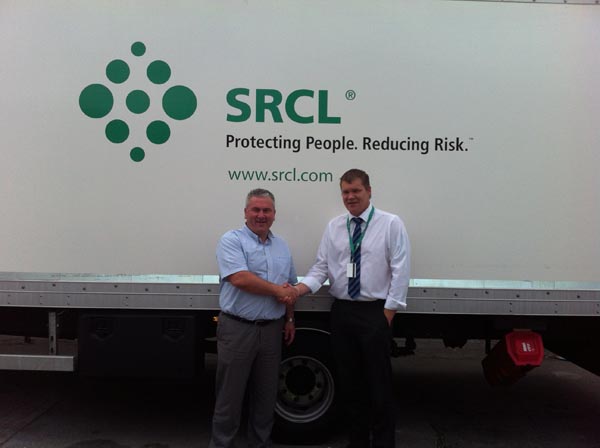 Mike Price, Founder and Sales Director of Tranzaura Ltd. with Kevin Stephenson, Logistics Manager, SRCL.