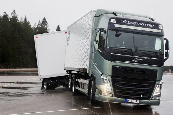 For trucks with conventional drawbar trailers, slippery winter roads and downhill gradients represent a tough challenge for even the most skilled of drivers. There is always the risk of the combination becoming unstable and, in the worst-case scenario, starting to jack-knife. Volvo Trucks has now developed a solution that significantly improves safety.
